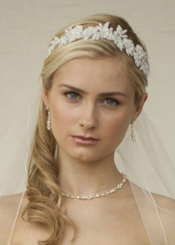 White Lace Applique Garden Wedding Headband with Meticulous Edging