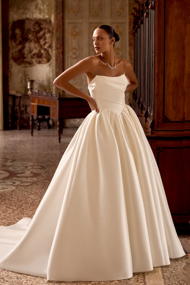 Mikado Ball Gown with Ruched Bodice and Basque Waistline