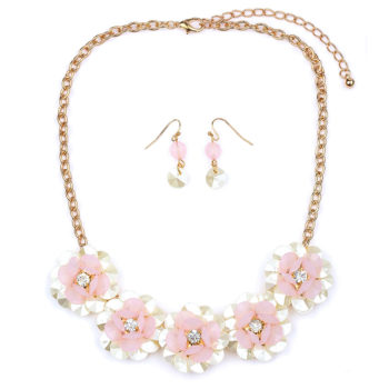 Pearlized Pink Flower Necklace Set for Weddings or Prom