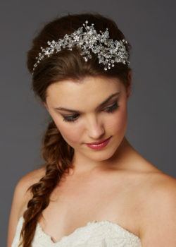 Ethereal and breathtaking, this best-selling crystal hair vine guarantees a bridal statement fit for the runway. Hand-wired with elaborate 4″ sprays of crystal teardrops and rhinestones, our 17″ flexible hair vine will glam up any wedding hairstyle.