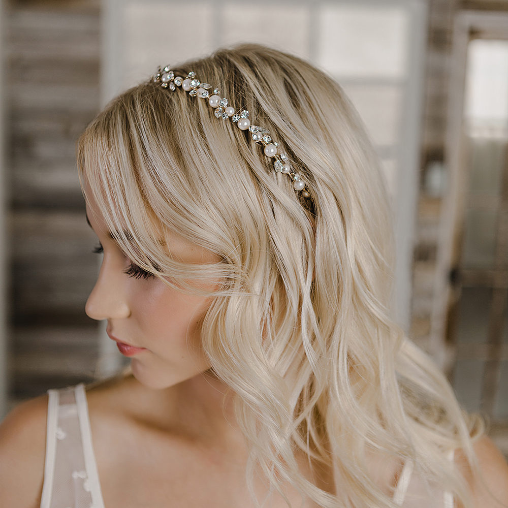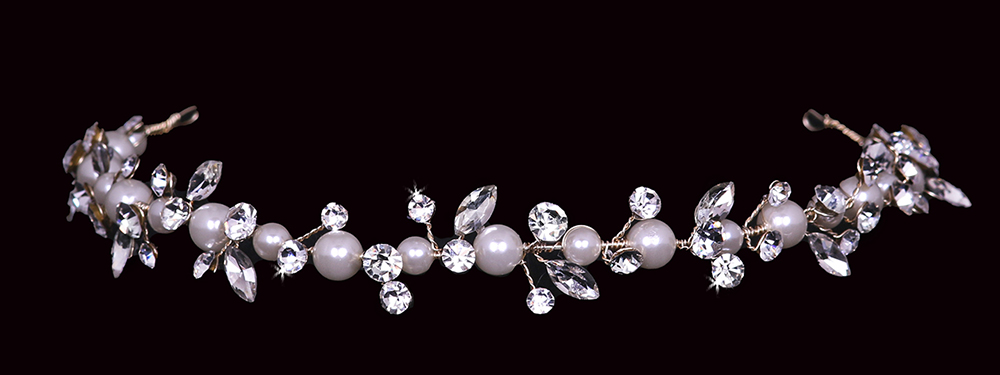 Head band with pearl and crystal accents